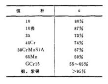 據一些工廠的實驗數據得知,不同金屬材料,在冷鐓時側表面出現裂紋的最大許用變形程度如下表: